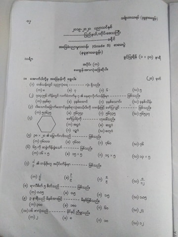 Read More:>>> ** ျမန္မာစာ၊ အဂၤလိပ္စာ (Grade 5) စာေမးပြဲနမူနာေမးခြန္းမ်ား