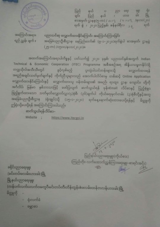 အိႏၵိယသမၼတႏိုင္ငံ၏ ပညာသင္ဆုတစ္ခုျဖစ္ေသာIndian Technical & Economic Cooperation(ITEC) Programme