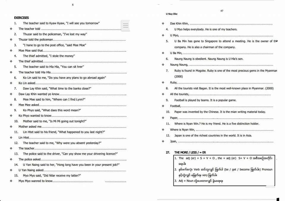 ဆရာဦးနေအုပ် သင်ကြားပို့ချထားတဲ့ Pattern အနှစ်ချုပ် . တက္ကသိုလ်ဝင် စာမေးပွဲဖြေဆိုကြမယ့် မောင်ငယ်၊ ညီမငယ်များအတွက် ဆရာဦးနေအုပ် သင်ကြားပို့ချပေးထားတဲ့ Pattern အနှစ်ချုပ်လေးကို ဝေမျှပေးလိုက်ပါတယ်။