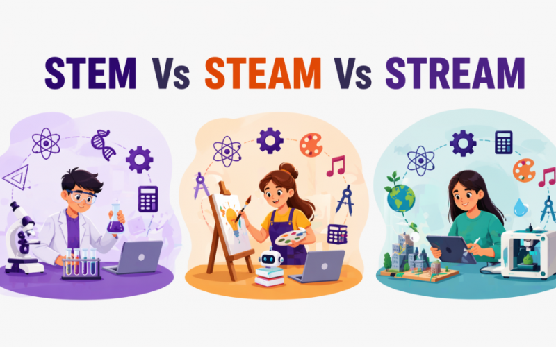 STEM ကိုတော့ ပညာရှင်များ၊ ဆရာများ၊ မိဘများ၊ ကျောင်းသားများ ရင်းနှီးပြီးသားဖြစ်သော်လည်း STEAM နှင့် STREAM တို့ကိုတော့ လူသိနည်းနေသေးသည်ဟု ယူဆမိပါသည်။ ထို့ကြောင့် အောက်တွင် ဤပညာရေးအယူအဆသုံးခုကြား ကွာခြားချက်များကို ရှင်းပြထားပါသည်။