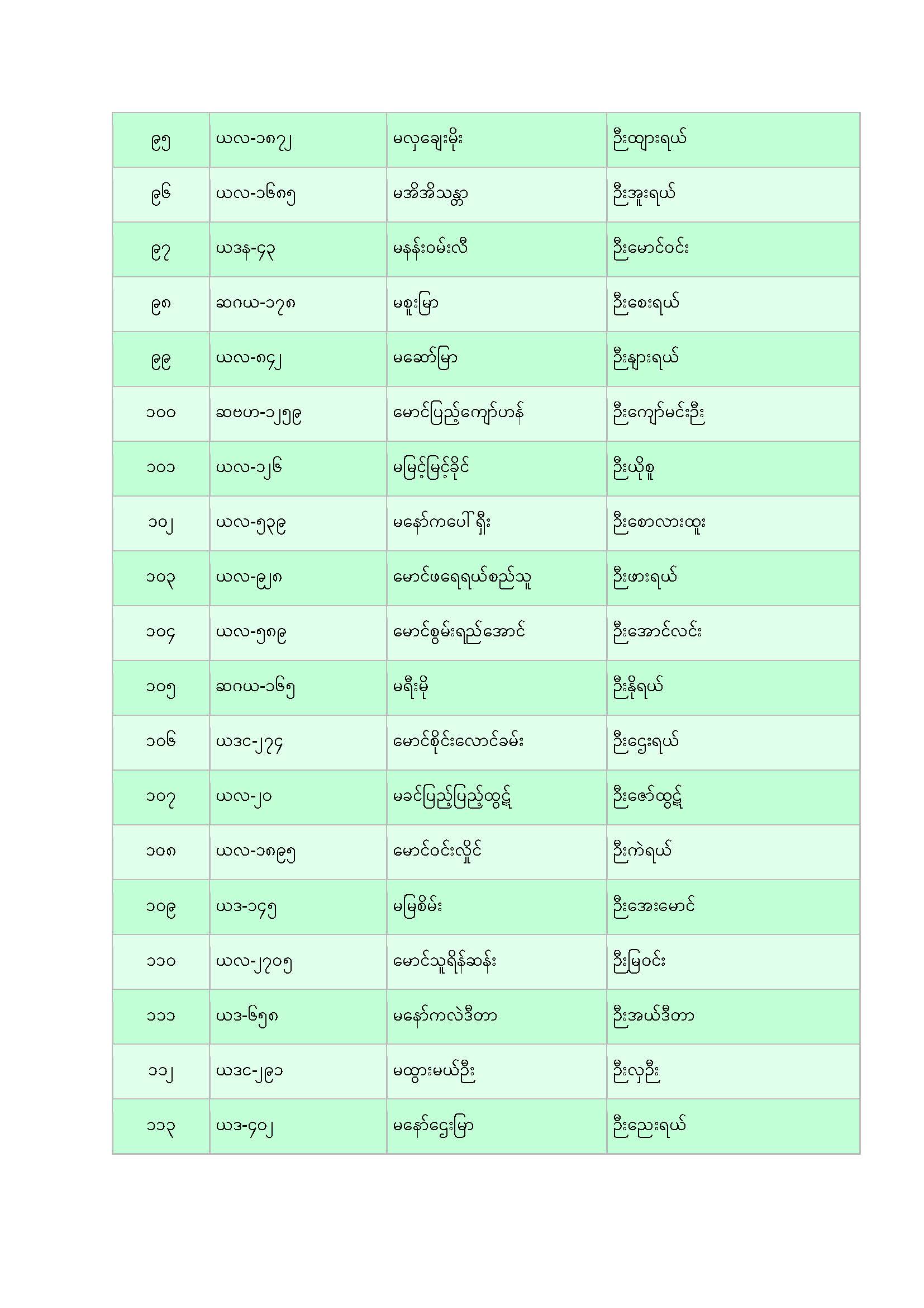 ၂၀၁၉-၂၀၂၀ ပညာသင်နှစ် AGTI ဝင်ခွင့်ရစာရင်းများ (လွိုင်ကော်)