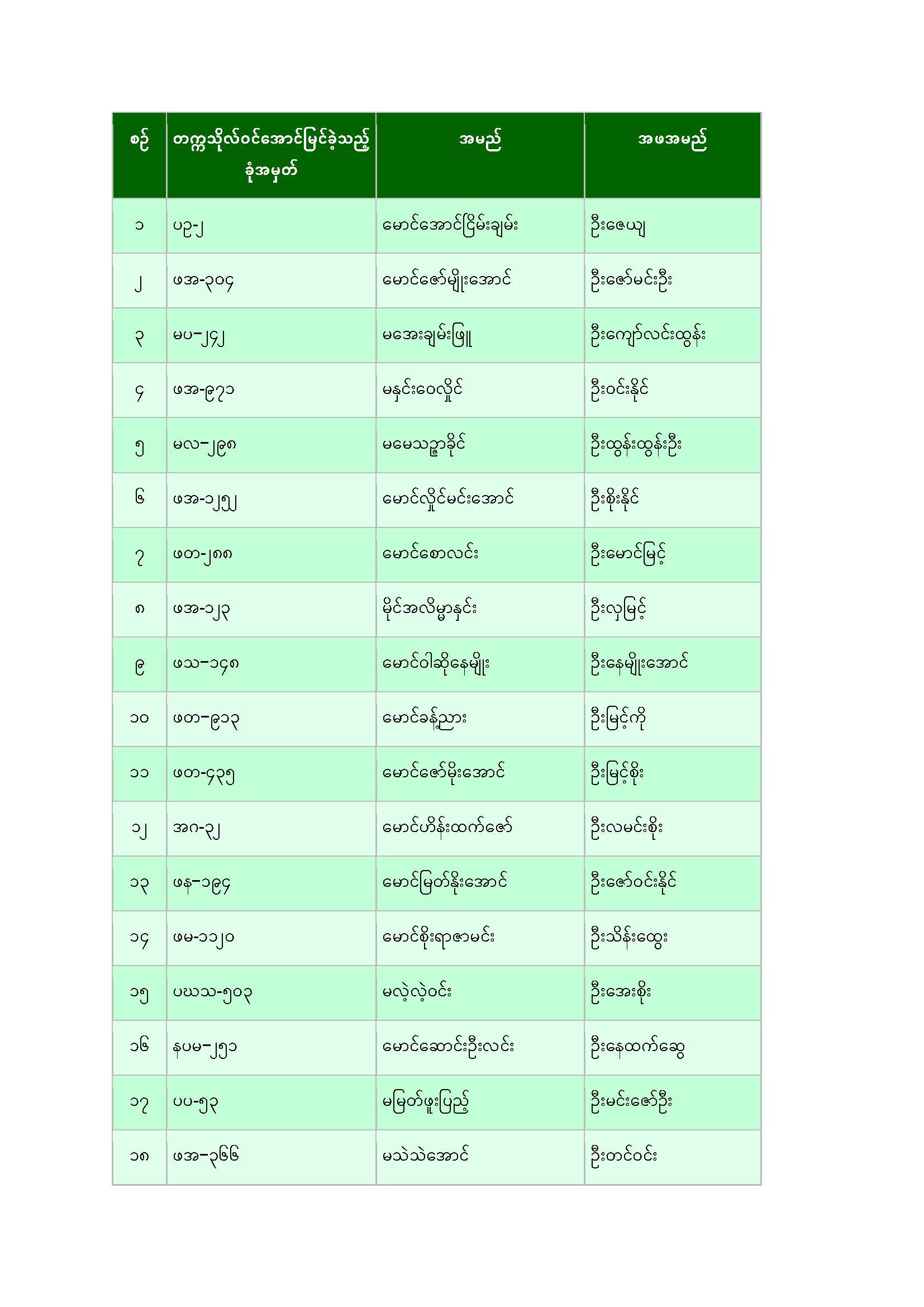 ၂၀၁၉-၂၀၂၀ ပညာသင်နှစ် AGTI ဝင်ခွင့်ရစာရင်းများ (သရက်)
