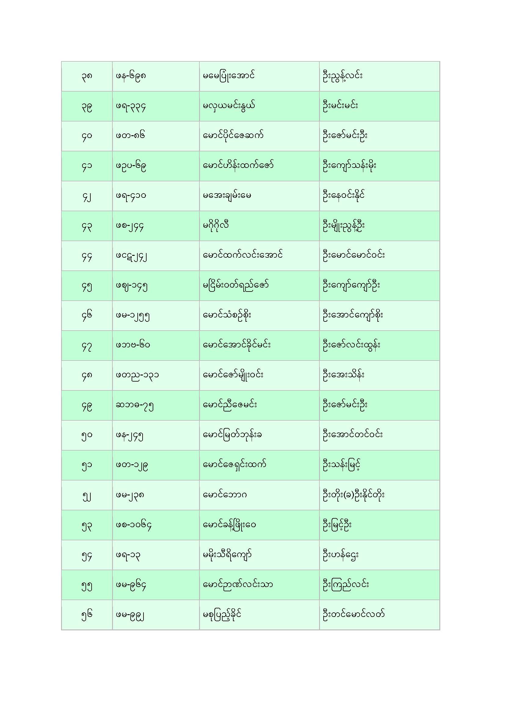 ၂၀၁၉-၂၀၂၀ ပညာသင်နှစ် AGTI ဝင်ခွင့်ရစာရင်းများ (ရေနံချောင်း)