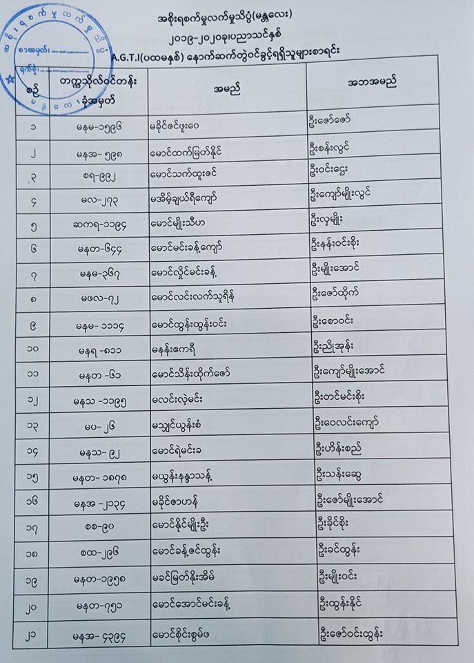 ** A.G.T.I (မႏၱေလး) ပထမႏွစ္ ေနာက္ဆက္တြဲဝင္ခြင့္ရရွိသြားသူမ်ားစာရင္း
