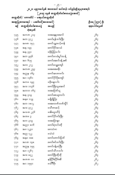 Read More:>>> ေတာင္ငူတကၠသိုလ္အေဝးသင္သင္တန္း ဝင္ခြင့္ရရွိသူမ်ားစာရင္း (ေမဂ်ာအားလုံး)