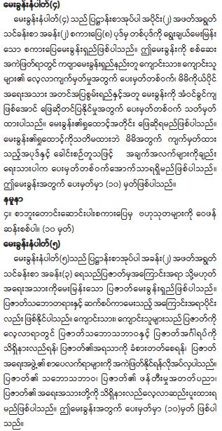 ယခုဖော်ပြချက်သည် ၂၀၂၅ ခုနှစ်၊ မတ်လတွင် ကျင်းပမည့် တက္ကသိုလ်ဝင်စာမေးပွဲတွင် ဝင်ရောက်ဖြေဆိုကြမည့် ကျောင်းသား၊ ကျောင်းသူများ သိထားရမည့် ပြဌာန်းစာအုပ်ပါ သင်ခန်းစာအကြောင်းအရာများ၊ မေးခွန်းပုံစံနှင့် အမှတ်ပေးစည်းမျဉ်းများကို ဘာသာရပ်တစ်ခုချင်းစီအလိုက် ဖော်ပြထားခြင်း ဖြစ်သည်။