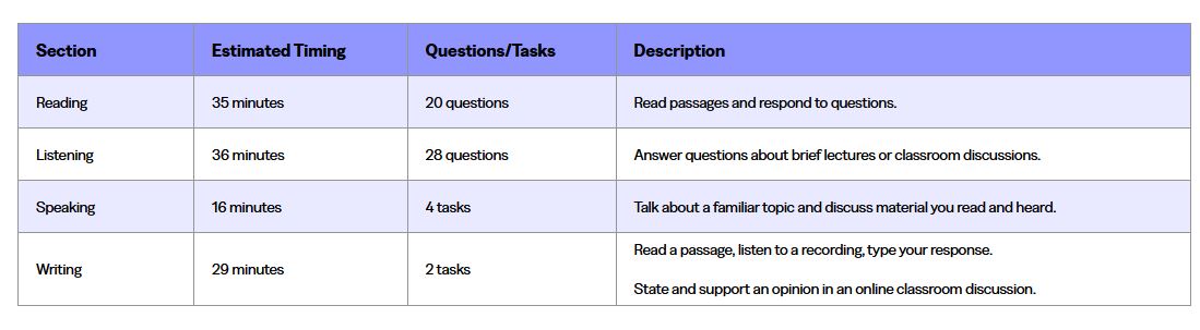 TOEFL ITP မေးခွန်းပုံစံနဲ့ အချိန်သတ်မှတ်ချက်