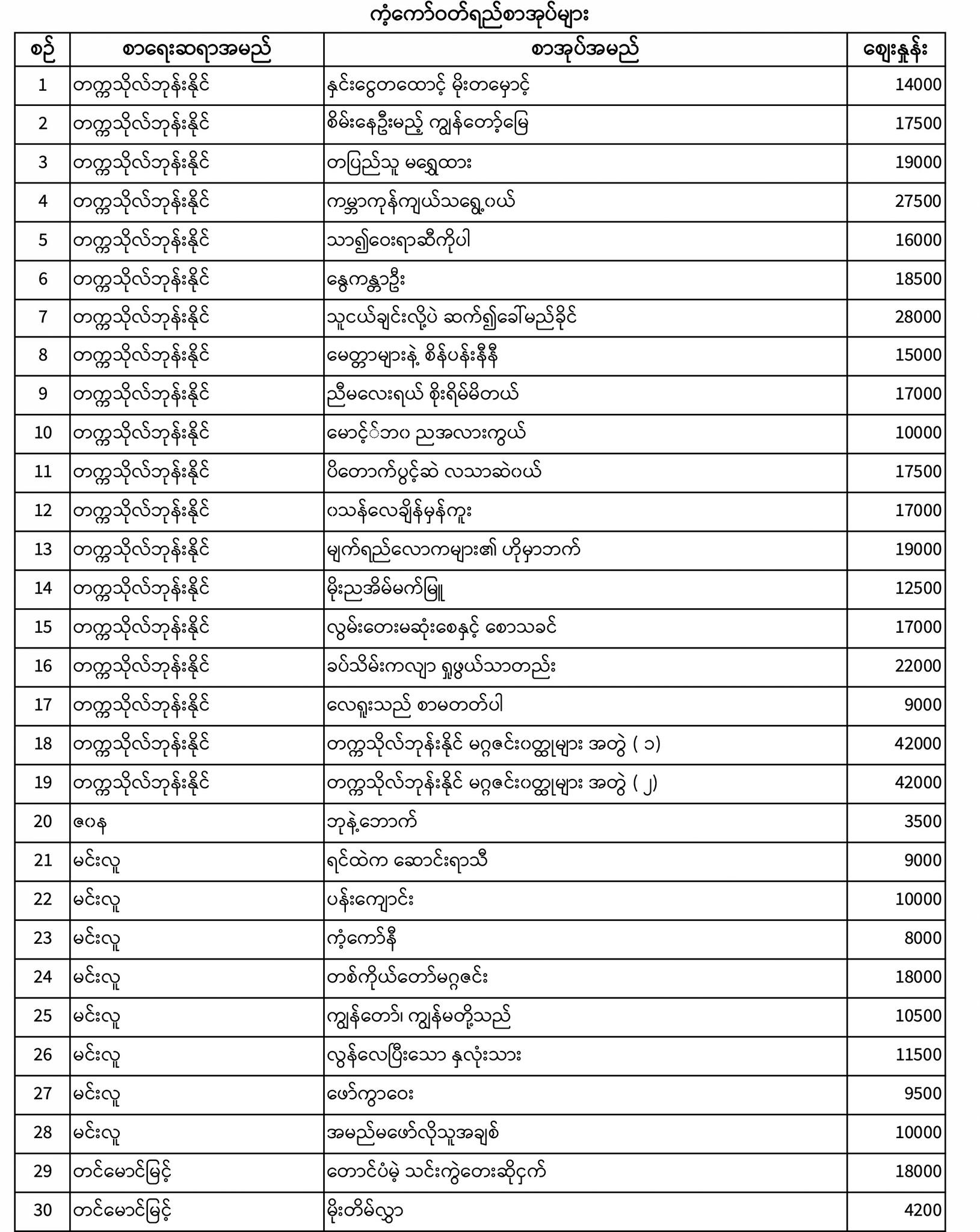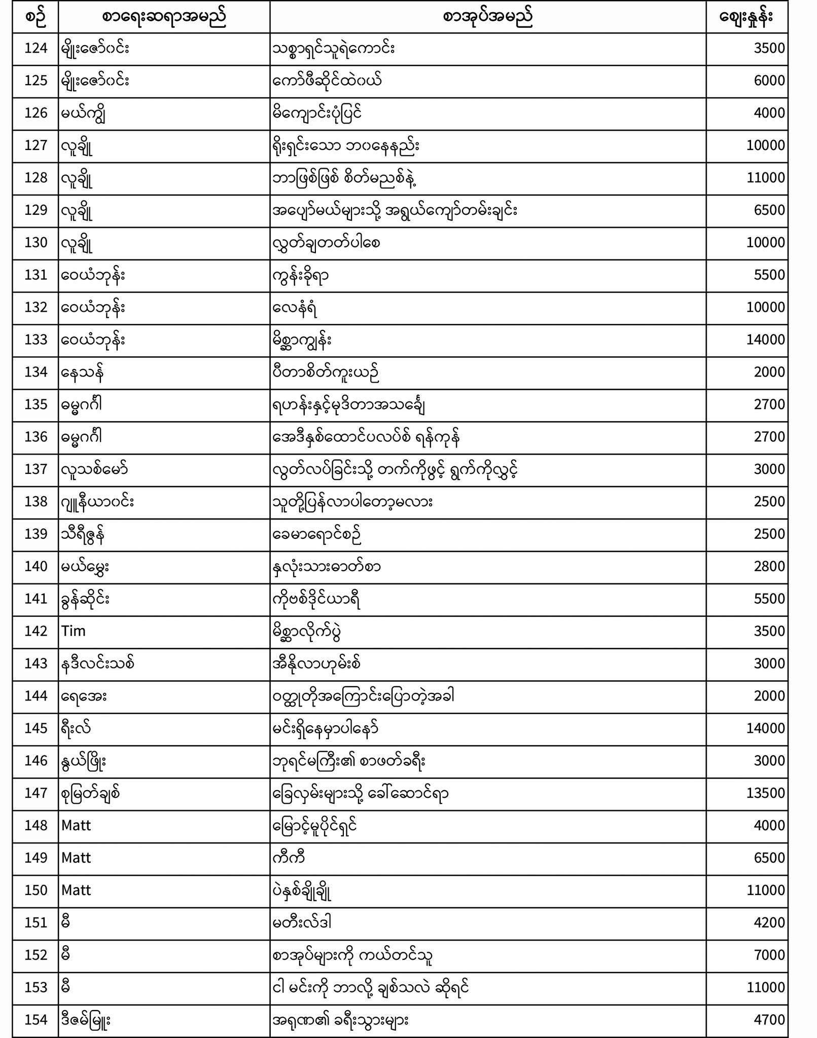 ဖော်ပြပါ ဈေးနှုန်းတွေက မူရင်းစာအုပ်ဈေးတွေ ဖြစ်ပါတယ်။