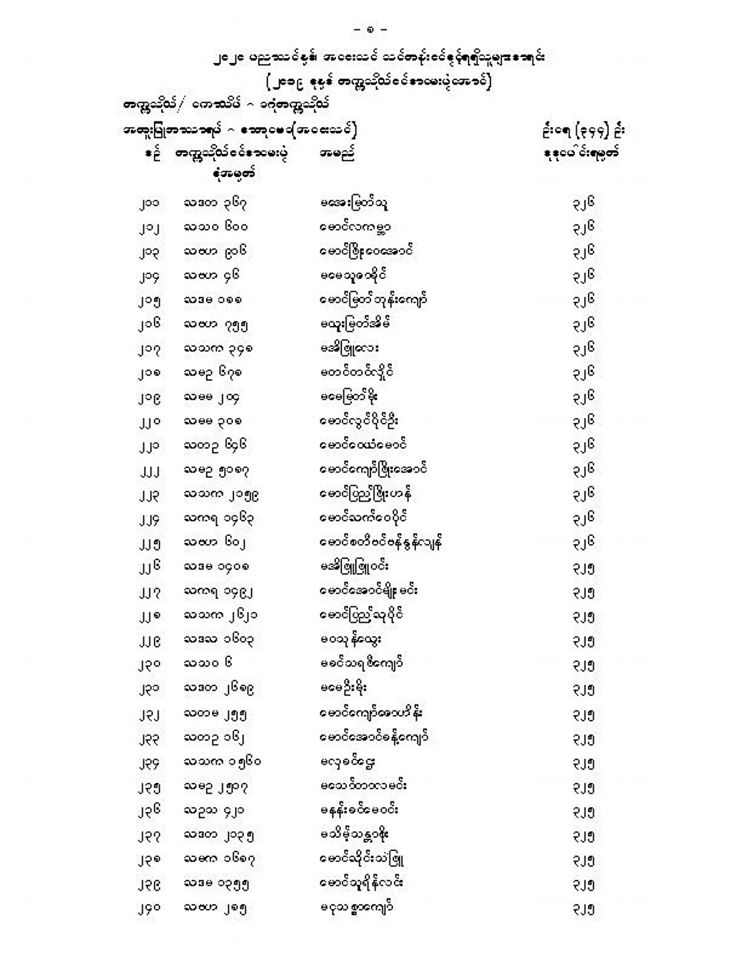 ဒဂုံတက္ကသိုလ် အဝေးသင်သင်တန်း (ဓာတုဗေဒအထူးပြု) ဝင်ခွင့်ရသူများစာရင်း
