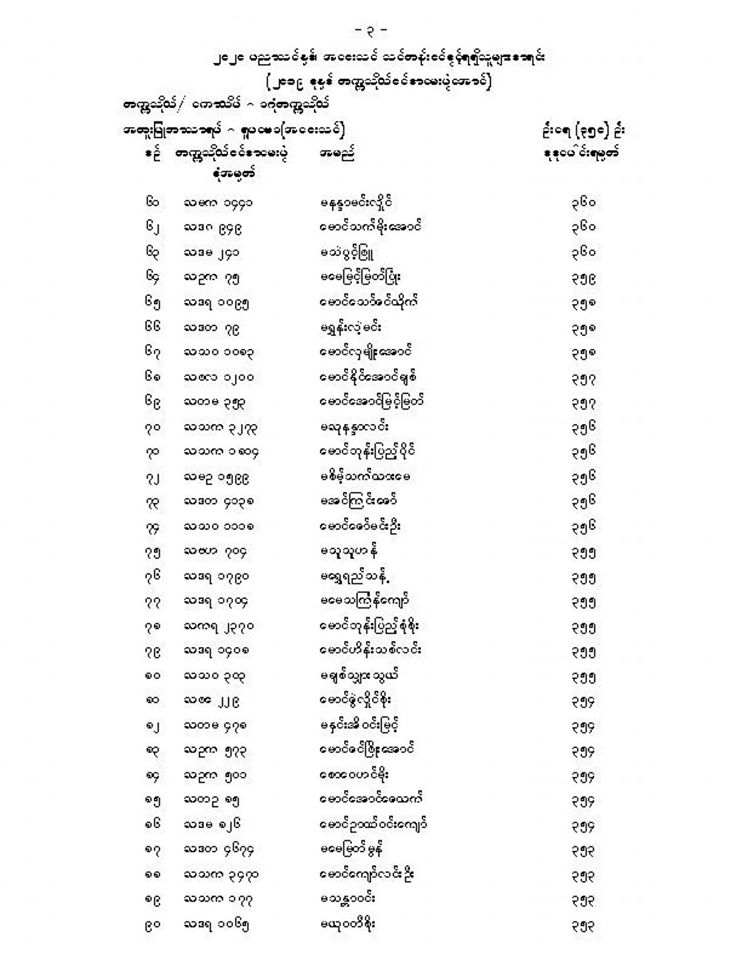 ၂၀၂၀ ခုနှစ် - တက္ကသိုလ်ဝင် စာမေးပွဲအောင်စာရင်း (ရန်ကုန်တိုင်းဒေသကြီး)