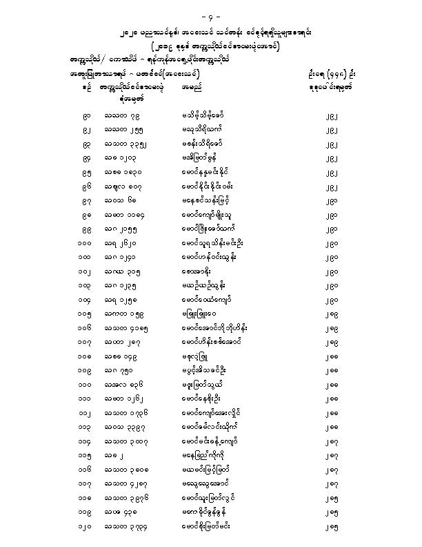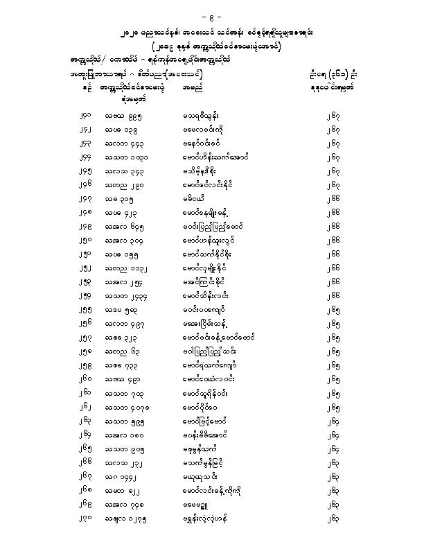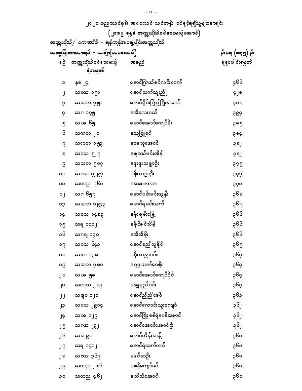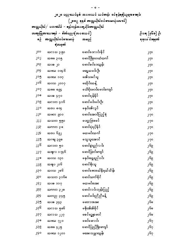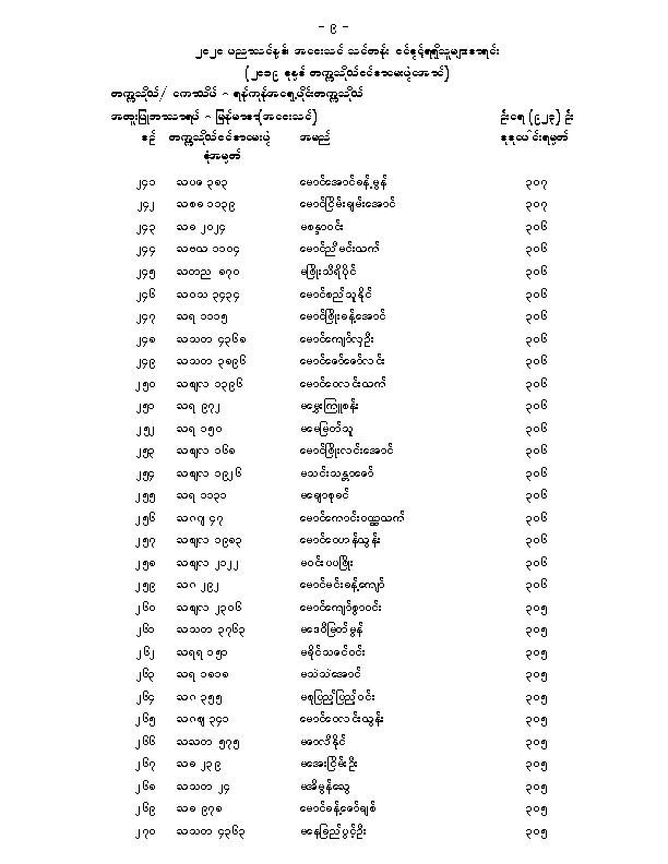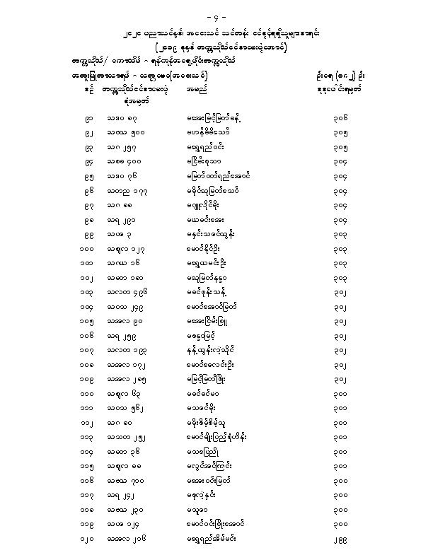 ရန္ကုန္အေရွ႕ပိုင္းတကၠသိုလ္အေဝးသင္သင္တန္း ေမဂ်ာအလိုက္ဝင္ခြင့္ရရွိသူမ်ားစာရင္းျဖစ္ပါတယ္။