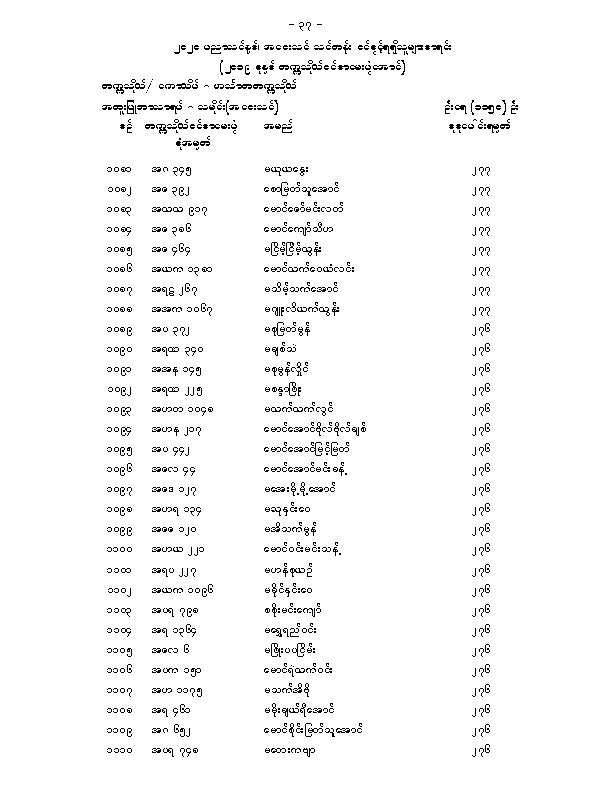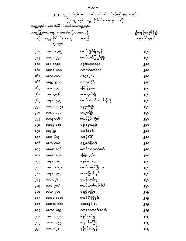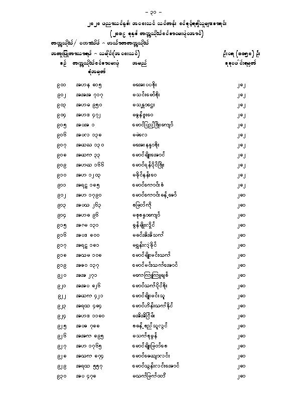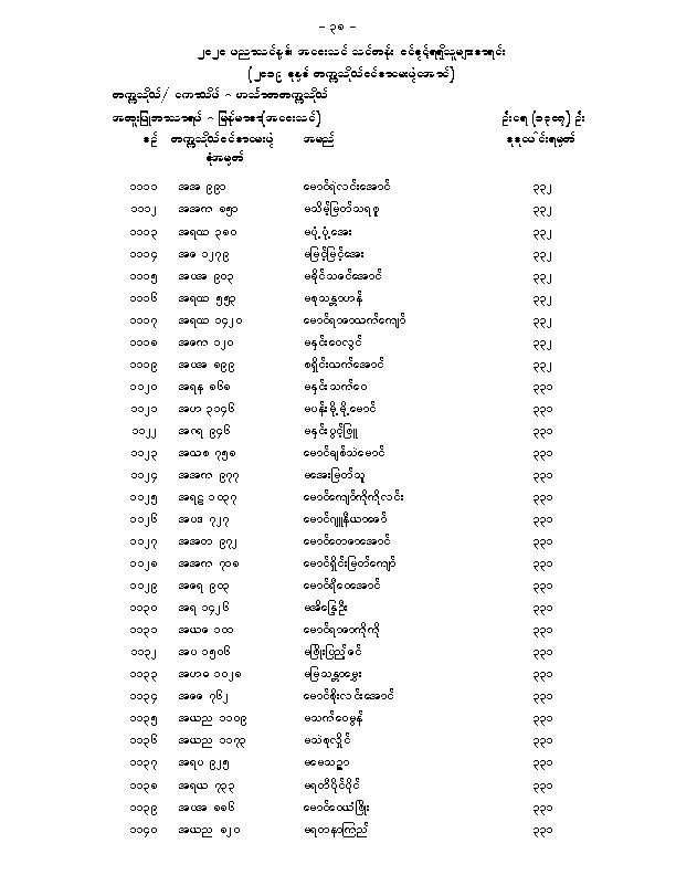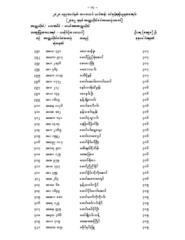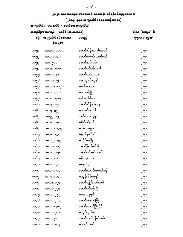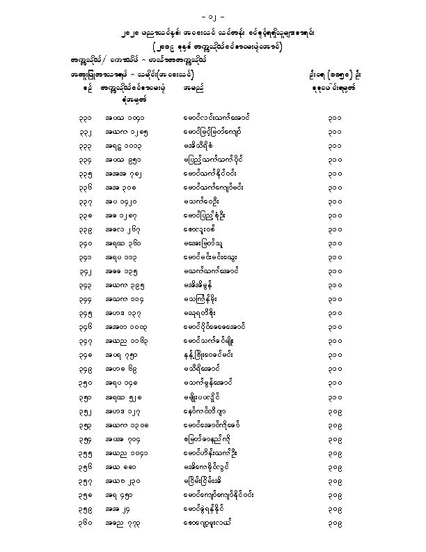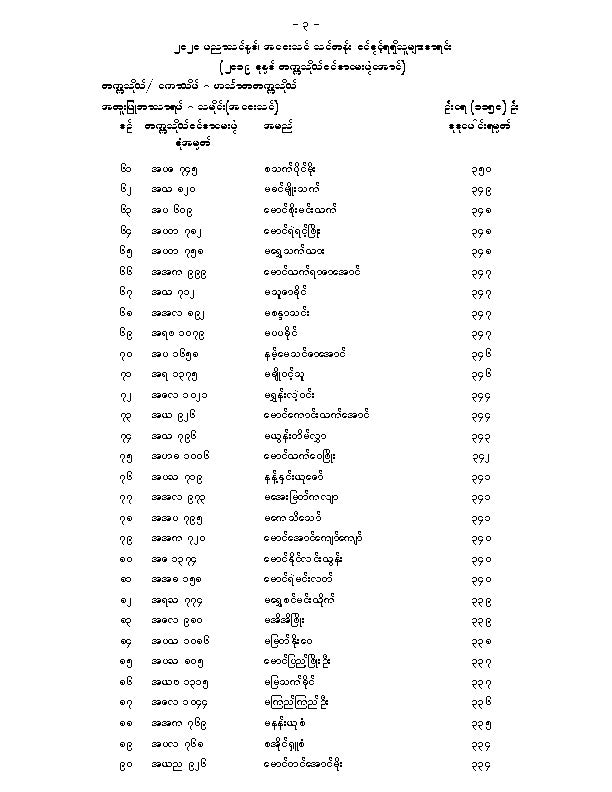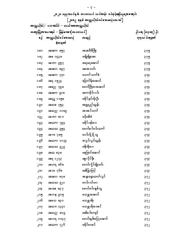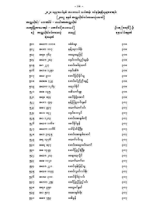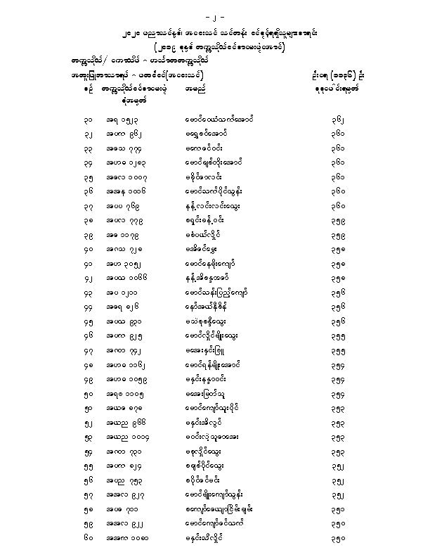 ဟသၤာတတကၠသိုလ္အေဝးသင္သင္တန္း ေမဂ်ာအလိုက္ဝင္ခြင့္ရရွိသူမ်ားစာရင္းျဖစ္ပါတယ္။