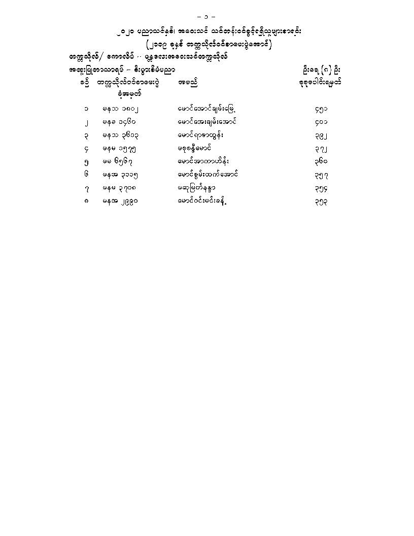 မန္တလေးအဝေးသင်တက္ကသိုလ် စီးပွားစီမံနှင့်စီးပွားရေးပညာ ဘာသာရပ်ဝင်ခွင့်ရရှိသူများစာရင်း