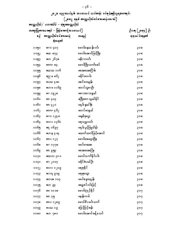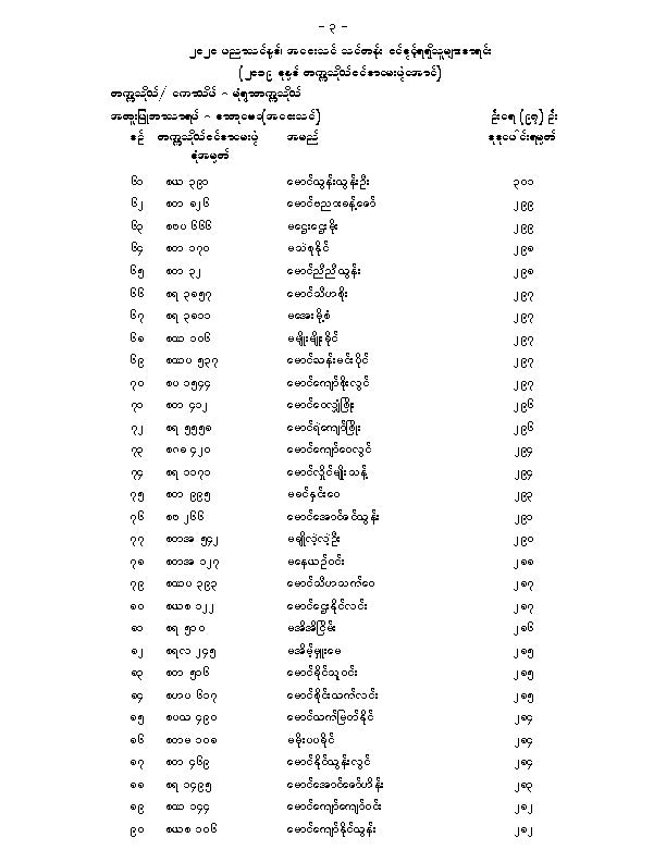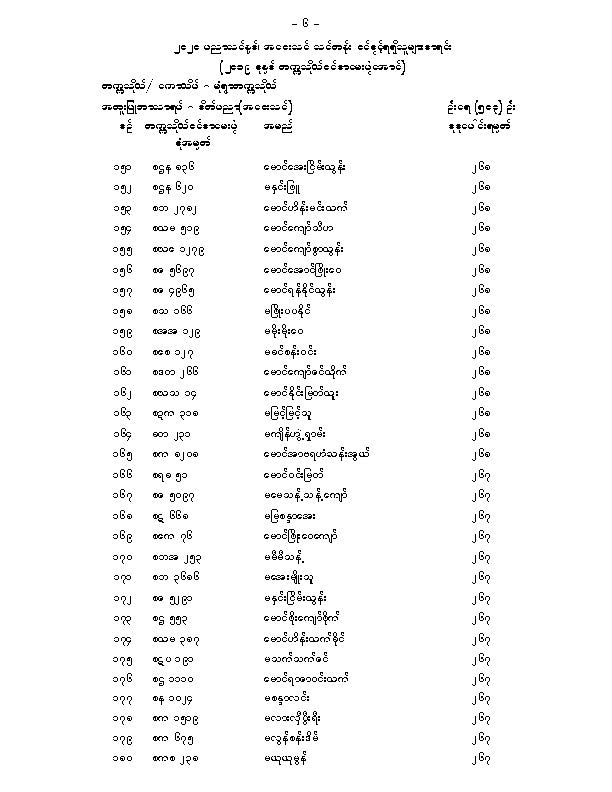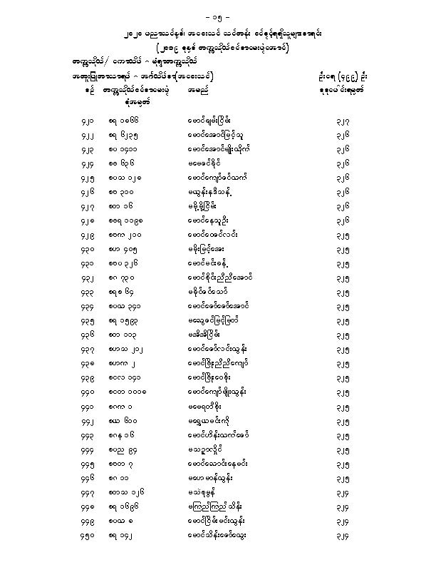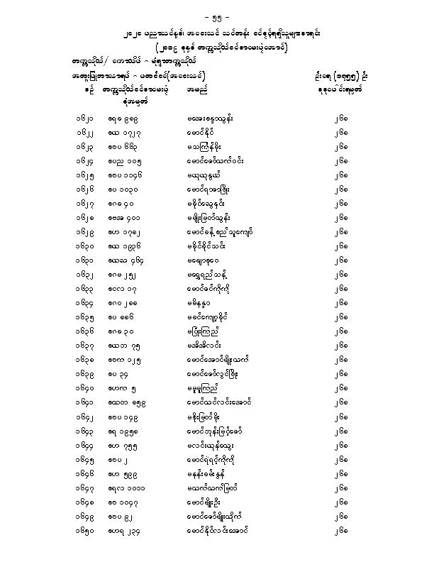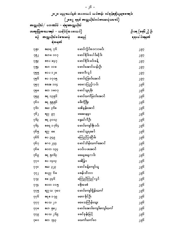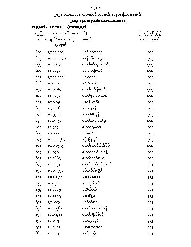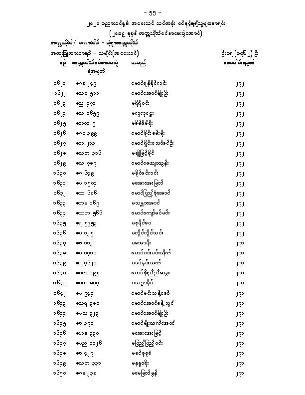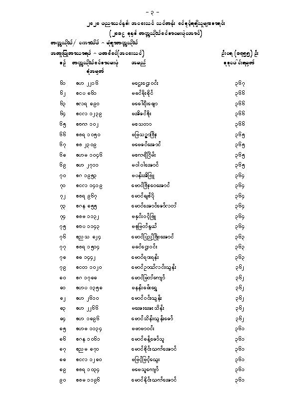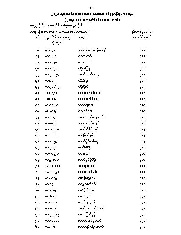 မံုရြာတကၠသိုလ္အေဝးသင္သင္တန္း ေမဂ်ာအလိုက္ဝင္ခြင့္ရရွိသူမ်ားစာရင္းျဖစ္ပါတယ္။