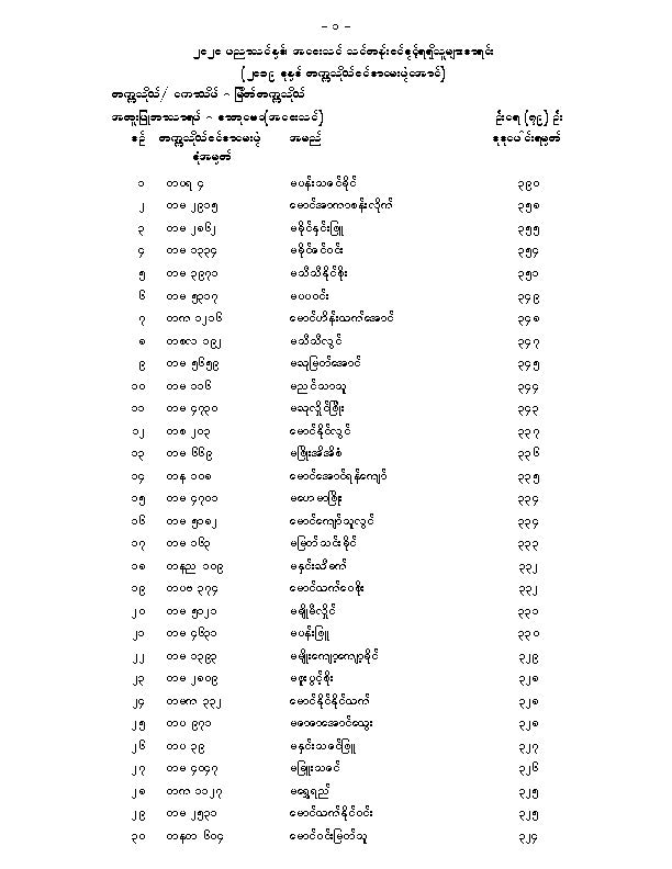 မြိတ်တက္ကသိုလ် အဝေးသင်သင်တန်း (ဓာတုဗေဒအထူးပြု) ဝင်ခွင့်ရရှိသူများစာရင်း