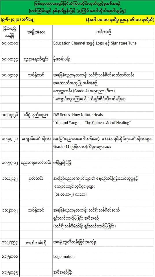 ျမန္မာ့ပညာေရးရုပ္ျမင္သံၾကားလိုင္းထုတ္လႊင့္မႈအစီအစဉ္