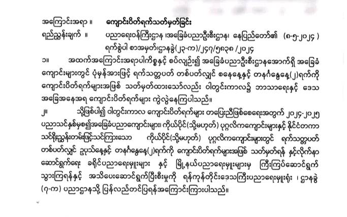 ၂၀၂၄-၂၀၂၅ ပညာသင်နှစ်မှစ၍ ဝါတွင်းကာလ၌ အခြေခံပညာကျောင်းများ၊ မြန်မာသင်ရိုးဖြင့် သင်ကြားနေသော ပုဂ္ဂလိကကျောင်းများနှင့် နိုင်ငံတကာသင်ရိုးဖြင့် သင်ကြားနသော ပုဂ္ဂလိကကျောင်းများတွင် ရက်သတ္တတစ်ပတ်လျှင် ဥပုသ်နေ့နှင့် တနင်္ဂနွေနေ့ နှစ်ရက်ကို ကျောင်းပိတ်ရက်များအဖြစ် သတ်မှတ်ရန် ကြေညာချက် ထုတ်ပြန်ထားပါသည်။