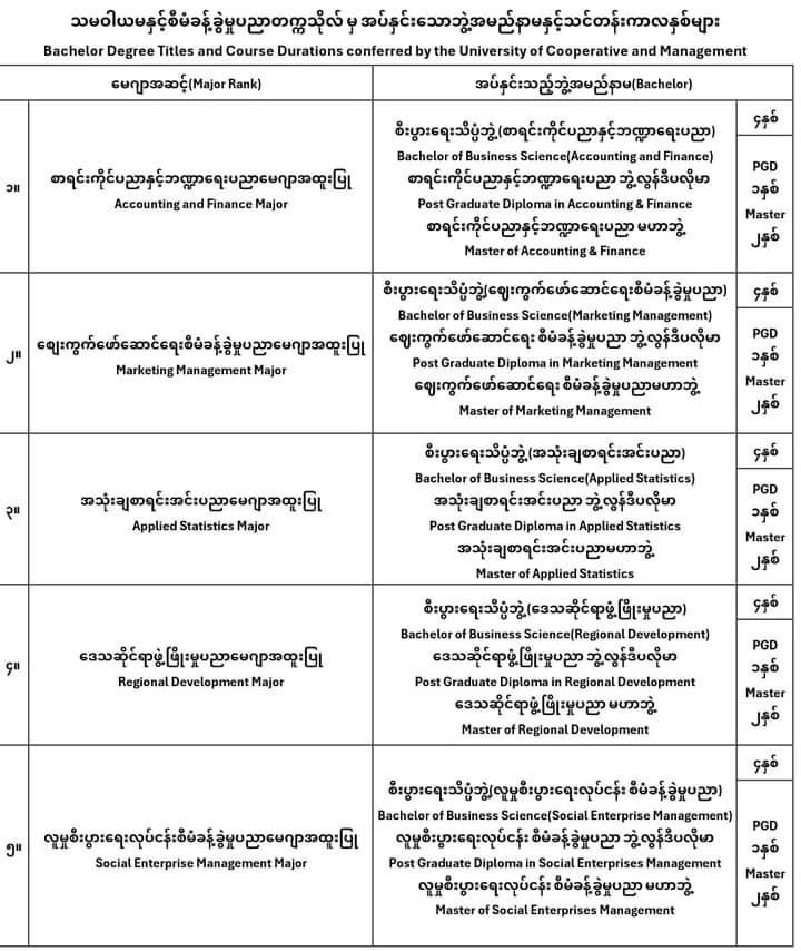 လောလောလတ်လတ် တက္ကသိုလ်ဝင်စာမေးပွဲဖြေဆိုအောင်မြင်ထားတဲ့ ညီငယ်/ညီမငယ်တွေအနေနဲ့ တက္ကသိုလ်စတက်ဖို့ မရွေးချယ်ခင်မှာ ဘယ်တက္ကသိုလ်မှာ ဘယ်လိုအထူးပြု ဘာသာရပ်တွေရှိလဲ? ဘယ်တက္ကသိုလ်တက်ရင် ဘာဘွဲ့ရမှာလဲ? ဘယ်တက္ကသိုလ်က အချိန်ဘယ်လောက်ကြာလဲ? ဆိုတာကို ကြိုတင်လေ့လာထားလို့ရအောင် မျှဝေပေးသွားပါမယ်။