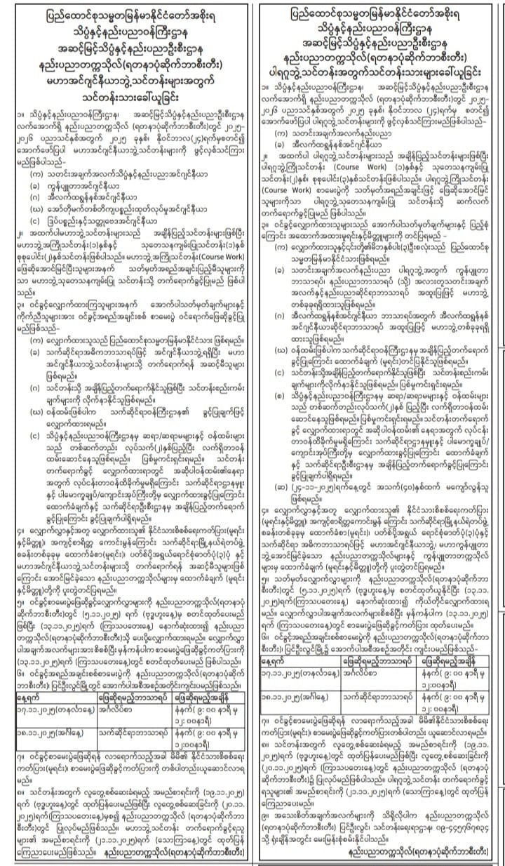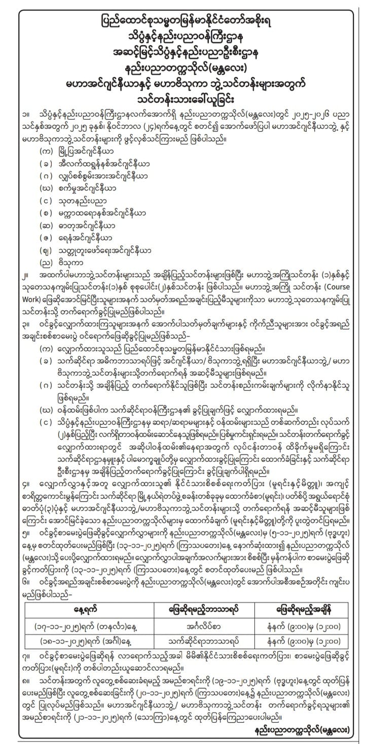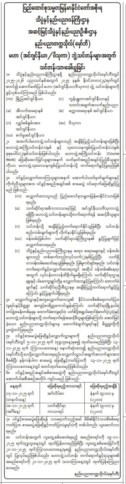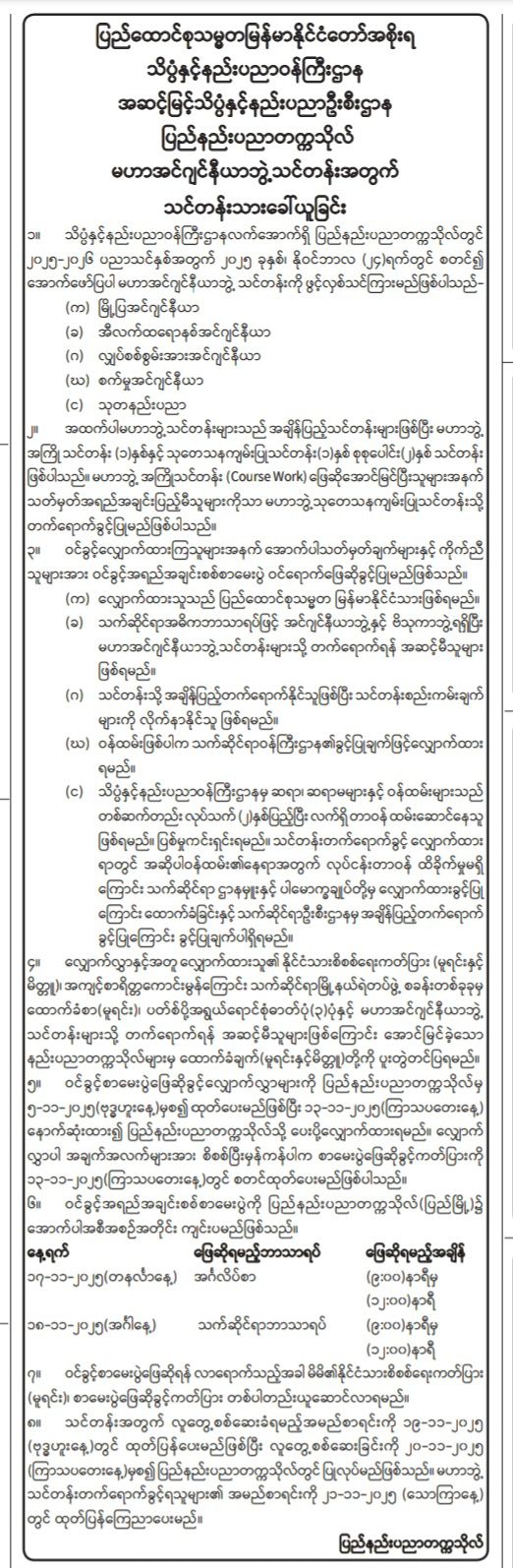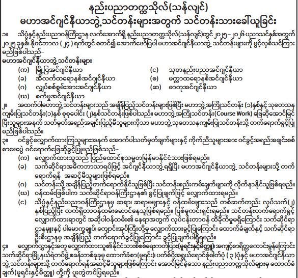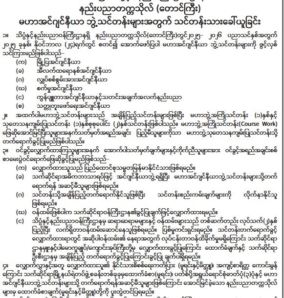 Entrance Exam Scopes - https://www.kyauksetu.edu.mm