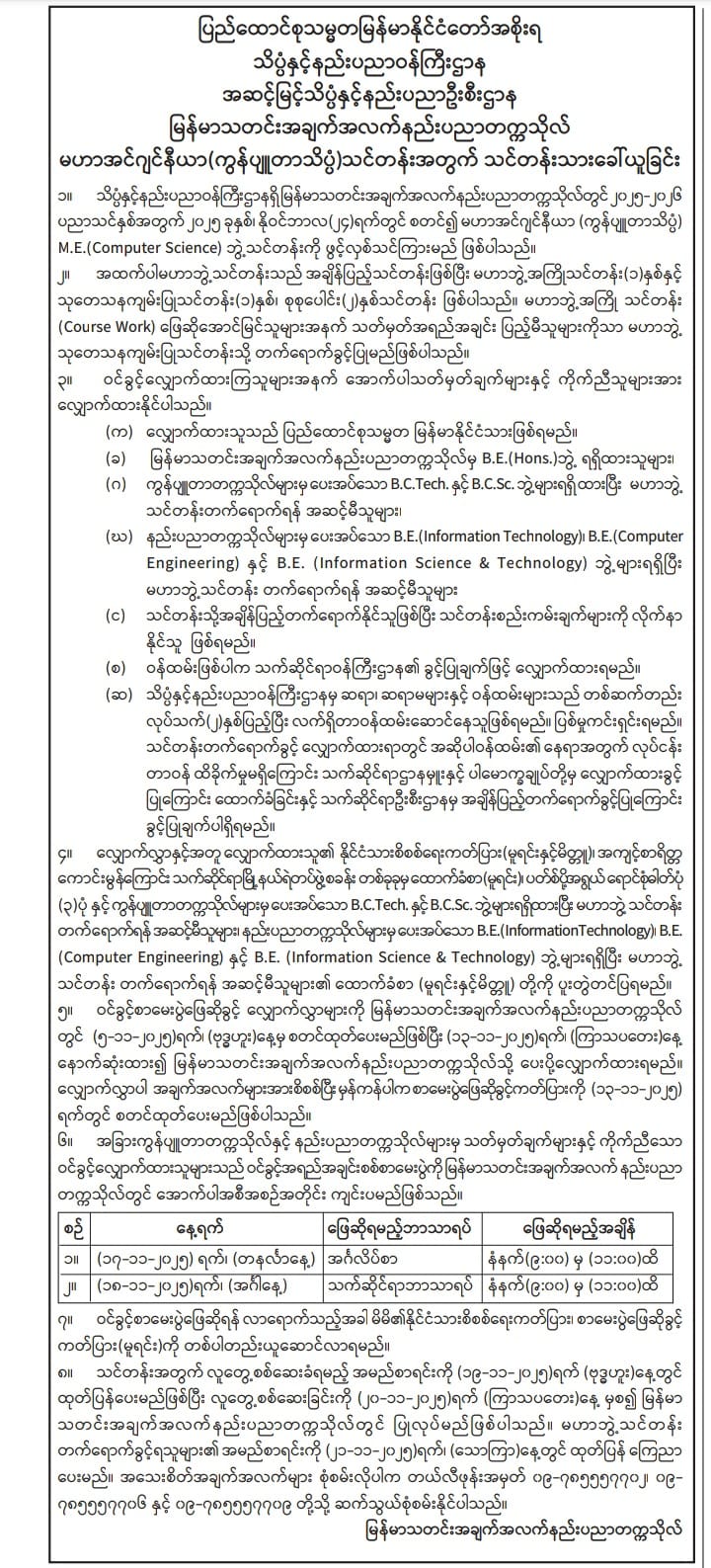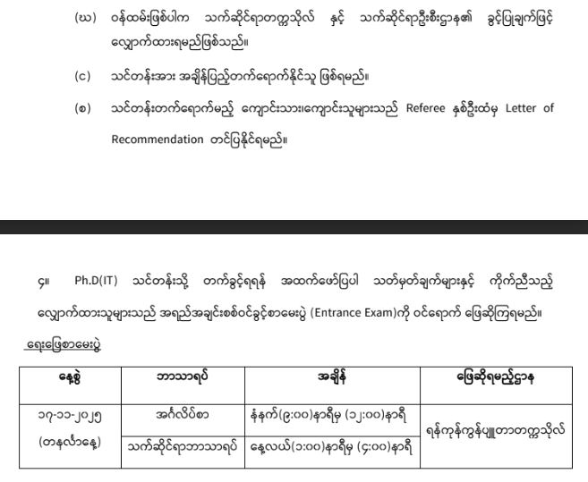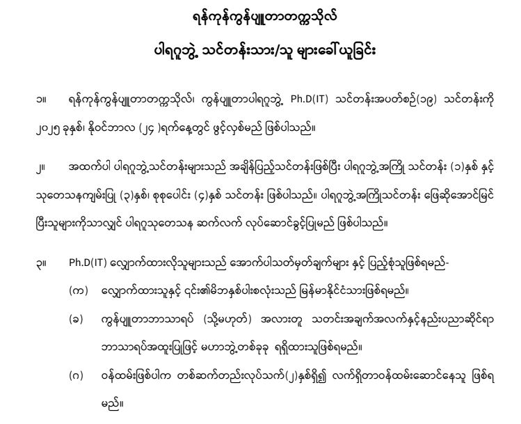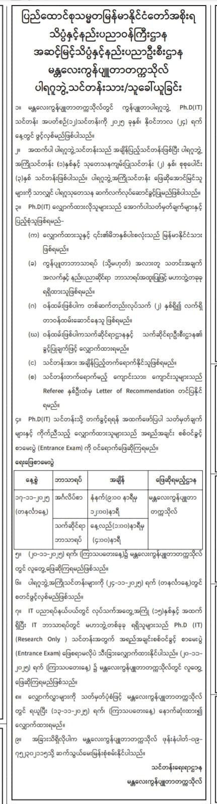 For Ph.D (IT) - https://www.ucsy.edu.mm/page316.do