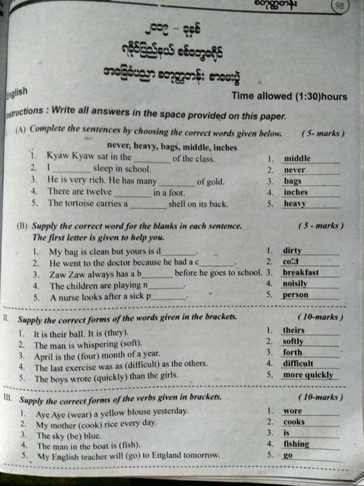 Read More:>>> အဂၤလိပ္စာကို ေလ့လာေနေသာလူငယ္မ်ားအတြက္ဆန္႔က်င္ဘက္စကားလံုးေတြကိုလည္းသိထားသင့္ပါတယ္