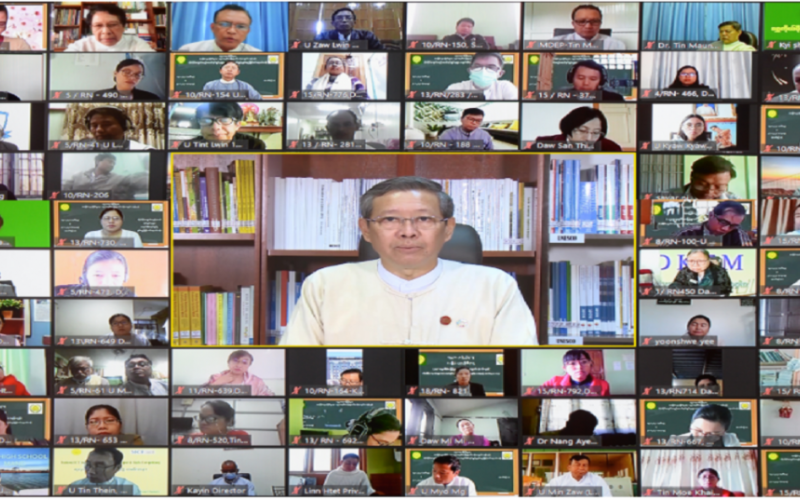 လက်ရှိ COVID - 19 အခြေအနေအရ နည်းပညာကိုအသုံးပြု၍ Online သင်တန်းများ ဆောင်ရွက်နိုင်ရန်အတွက် အဆင်သင့်မဖြစ်သေးသော်လည်း ကျောင်းများတွင်ရှိသည့် ကျောင်းအုပ်များ၊ ဆရာဆရာမများ၊ ဝန်ထမ်းများ၏ ICT Skill, Learning Management System၊ စီမံခန့်ခွဲမှု စွမ်းရည်တို့ကို မြှင့်တင်ကာ Online သင်တန်းများဖွင့်နိုင်အောင် ပူးပေါင်းပံ့ပိုးဆောင်ရွက်ကြရမည် ဖြစ်ပါကြောင်း၊ အားလုံးကမိသားစု စိတ်ဓာတ် ဖြင့် ဝိုင်းဝန်းပူးပေါင်းဆောင်ရွက်ပေးကြရန် မေတ္တာရပ်ခံပါကြောင်း ပြောကြားသည်။
