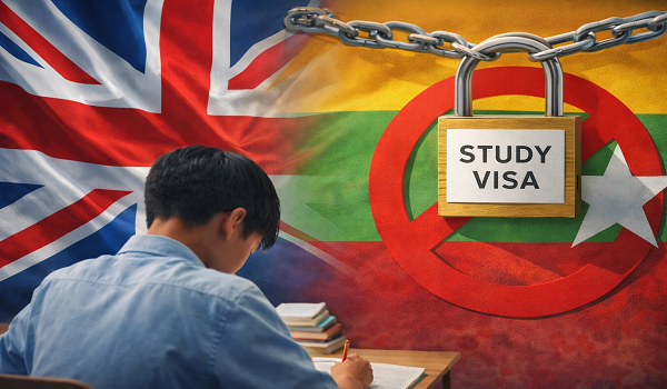 မြန်မာအပါအဝင် အာဖဂန်နစ္စတန်၊ ကင်မရွန်းနှင့် ဆူဒန်တို့မှ ကျောင်းသားများကို ယခုလမှစ၍ ကျောင်းသားဗီဇာထုတ်ပေးခြင်းအား ရပ်ဆိုင်းသွားမည်ဖြစ်ကြောင်း ယူကေပြည်ထဲရေးအတွင်းဝန် ရှာဘာနာမာမွတ်မှ ပြောကြားခဲ့သည်။