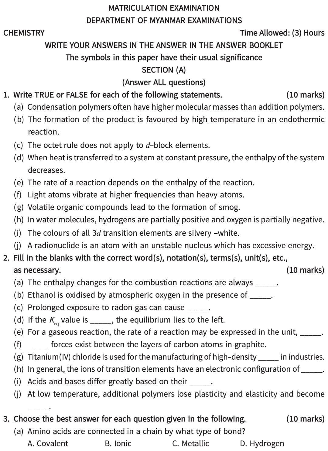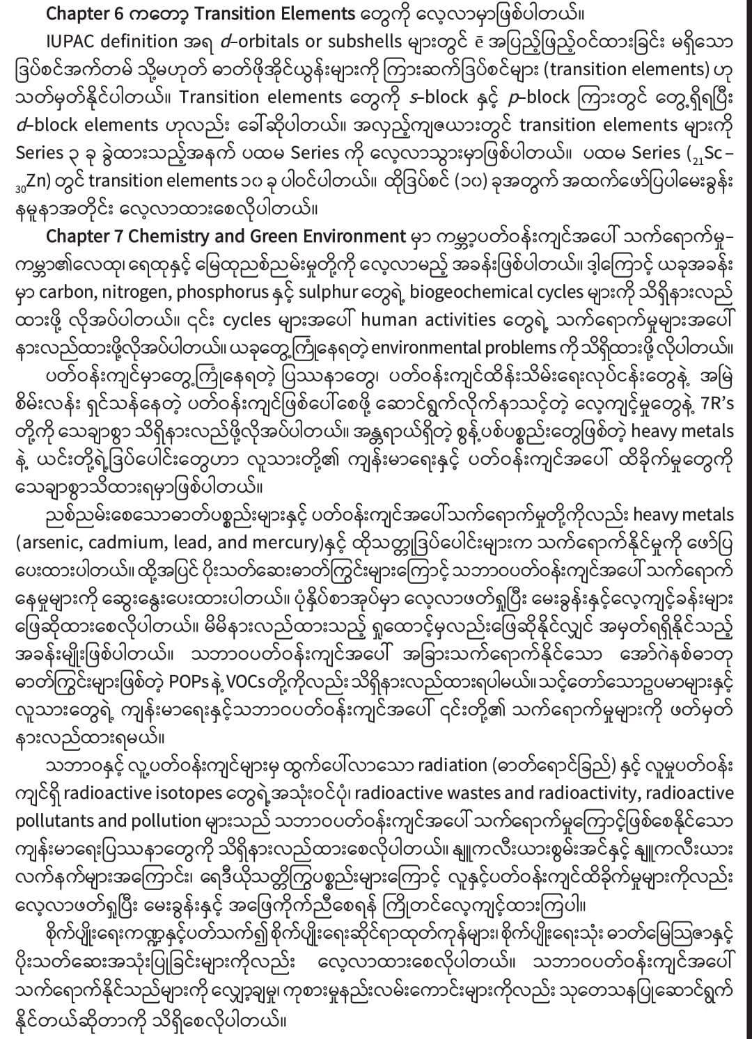 ဓာတုဗေဒ (ဒေါက်တာရဲမြင့်အောင်၊ ပါမောက္ခ (ဌာနမှူး)၊ ဓာတုဗေဒဌာန။ ရန်ကုန်တက္ကသိုလ်)