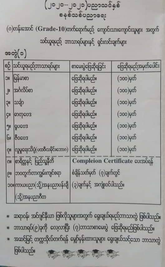 စနစ္သစ္ပညာေရးတြင္ သင္ယူရမည့္ ဘာသာရပ္ႏွင့္ ရွင္းလင္းခ်က္မ်ား