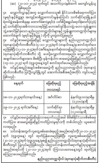ရန်ကုန်နည်းပညာတက္ကသိုလ်၊ ရန်ကုန်အနောက်ပိုင်းနည်းပညာတက္ကသိုလ်၊ မန္တလေးနည်းပညာတက္ကသိုလ်၊ ပြည်နည်းပညာတက္ကသိုလ်၊ နည်းပညာတက္ကသိုလ် (ရတနာပုံဆိုက်ဘာစီးတီး)၊ နည်းပညာတက္ကသိုလ်(မန္တလေး)၊ နည်းပညာတက္ကသိုလ်(ကျောက်ဆည်)၊ နည်းပညာတက္ကသိုလ်(တောင်ကြီး)၊ နည်းပညာတက္ကသိုလ်(မှော်ဘီ)၊ နည်းပညာတက္ကသိုလ်(သန်လျင်)၊ သတင်းအချက်အလက်နည်းပညာတ္ကသိုလ် (ရန်ကုန်) တို့တွင် ဖွင့်လှစ်မည့် မဟာဘွဲ့နှင့် ပါရဂူဘွဲ့ သင်တန်းများအတွက် သင်တန်းသားများ ခေါ်ယူလျက်ရှိပါသည်။