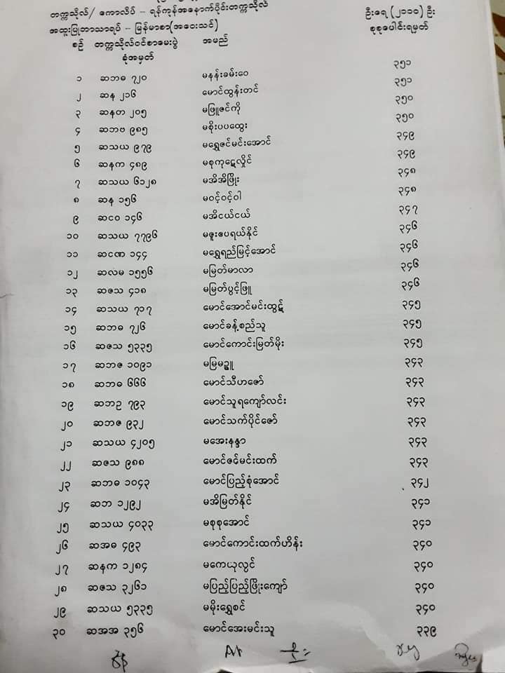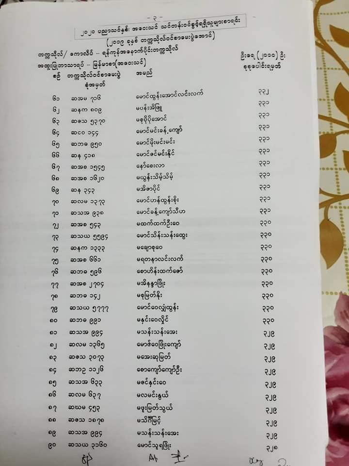 ရန်ကုန်အနောက်ပိုင်းတက္ကသိုလ် ၂၀၁၉-၂၀၂၀ ပညာသင်နှစ်(အဝေးသင်) အတွက် ပထမနှစ်ဝင်ခွင့်ရကျောင်းသားကျောင်းသူများစာရင်း မြန်မာစာဘာသာရပ် သင်တန်းဝင်ခွင့်စာရင်း