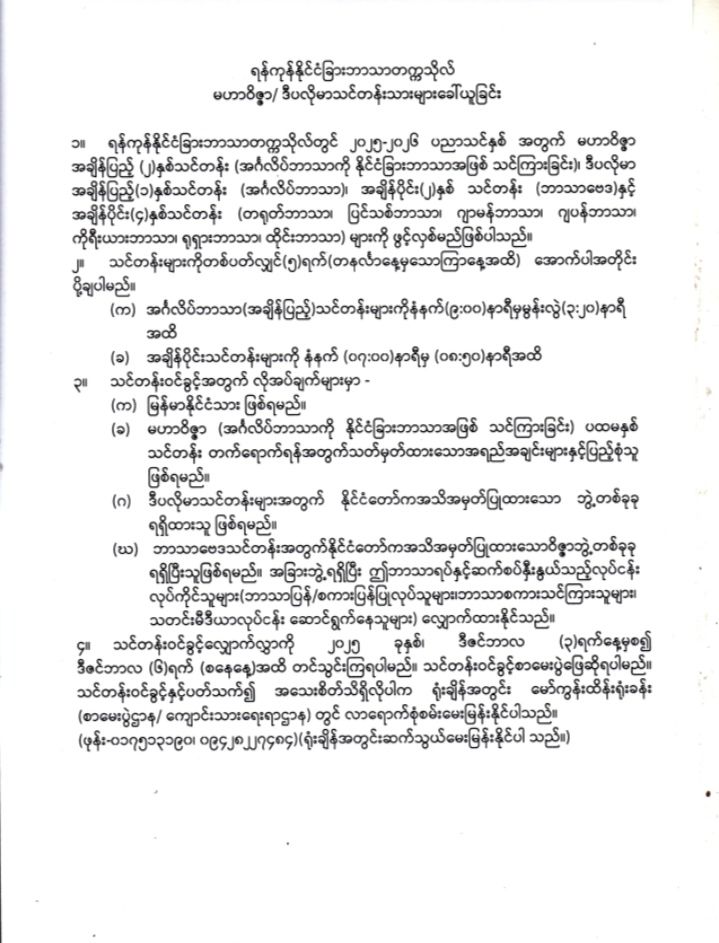 (၁၀) ဘာသာဗေဒ ဒီပလိုမာသင်တန်း